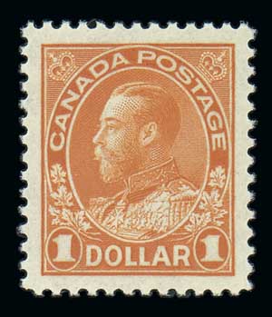 1923, $1 orange (122), centered with mathematical precision with large, perfectly balanced margins and bright, vibrant color. Original gum, never hinged. A stunning and truly Superb gem. Unitrade C$375 ($280). Scott $200