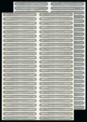 Alcohol Warehousing, Series of 1949 and Series of 1960, complete sheet of 50 of each, without gum as issued, Very Fine. Only 270 of the 1960 exist. Estimate 1,000 - 1,500