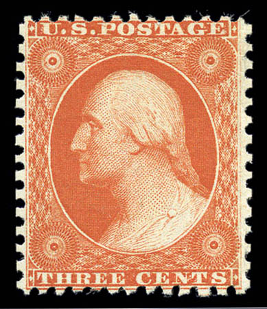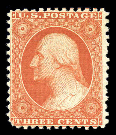 1857-60 (1875 Reprint), 3¢ scarlet (41), without gum as issued, well centered with bright, vibrant color, wonderfully fresh and F.-V.F. Scott $3,000