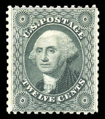 1857-60 (1875 Reprint), 12¢ greenish black (44), without gum as issued, fresh and nicely centered, F.-V.F. Scott $3,000