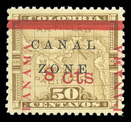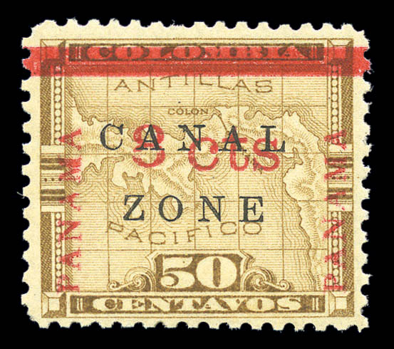 UNDOUBTEDLY ONE OF THE FINEST EXAMPLE OF THIS KEY CANAL ZONE STAMP IN EXISTENCE.