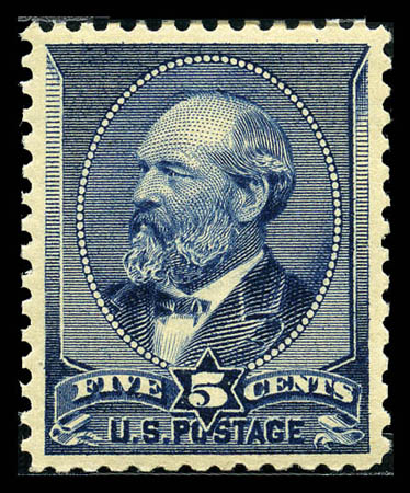 1888, 5¢ indigo (216), choice centering with large, perfectly balanced margins, rich color and full, never hinged original gum, post office fresh and Extremely Fine to Superb. SMQ $5,200. Scott $700