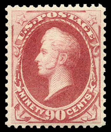 1879, 90¢ carmine (191), fresh and virtually perfectly centered with generous, beautifully balanced margins, vibrant color and spotless, never hinged original gum; Extremely Fine to Superb and choice. SMQ $42,000. Scott $7,000