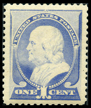 1887, 1¢ ultramarine (212), centered with mathematical precision amid absolutely humongous, perfectly balanced margins with truly radiant color and flawless, never hinged original gum; a stunning, positively Superb Jumbo Gem. SMQ $7,700 for a normal 98. Scott $290