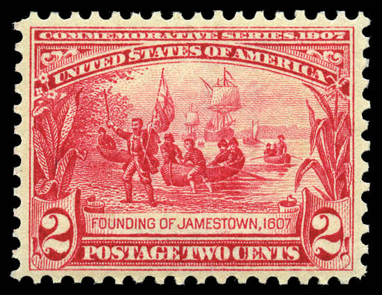 1907, 2¢ Jamestown (329), virtually perfectly centered and exceptionally bright and fresh with immaculate, never hinged original gum; Extremely Fine to Superb. SMQ $725. Scott $75
