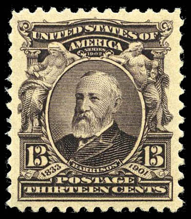 1902, 13¢ purple black (308), all but perfectly centered with generous, perfectly balanced margins, deep, dark color and immaculate, never hinged original gum; Extremely Fine to Superb and choice. SMQ $850. Scott $100