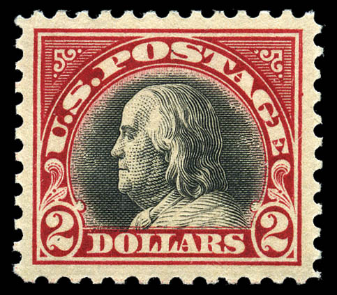 1920, $2 carmine & black (547), post office fresh and virtually perfectly centered, original gum, never hinged, Extremely Fine to Superb. SMQ $875. Scott $290