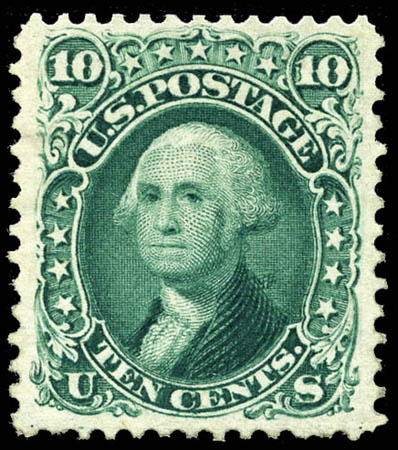 1875 Re-issue of 1861-67 issue, 10¢ green (106), deep color on bright paper, large margins, original gum, fresh and Fine. Only 451 issued. Scott $3,500