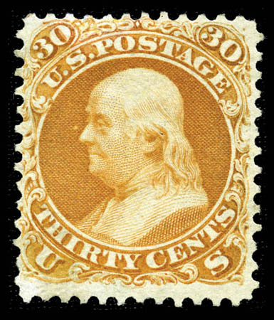 ( ) 1875 Re-issue of 1861-67 issue, 30¢ brownish orange (110), deep distinctive color on fresh white paper, unused, Fine. Scott $3,000