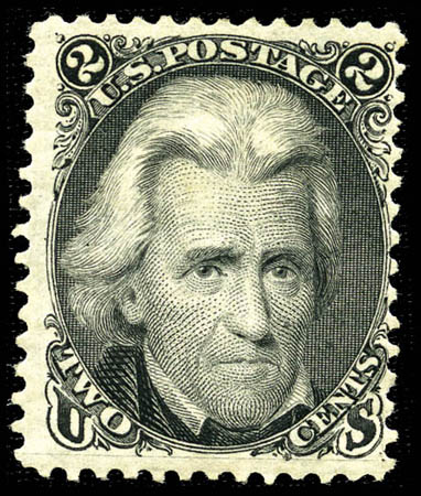 ( ) 1875 Re-issue of 1861-67 issue, 2¢ black (103), beautifully centered with a razor-sharp impression, unused without gum, Very Fine to Extremely Fine. Only 979 issued. Scott $1,750