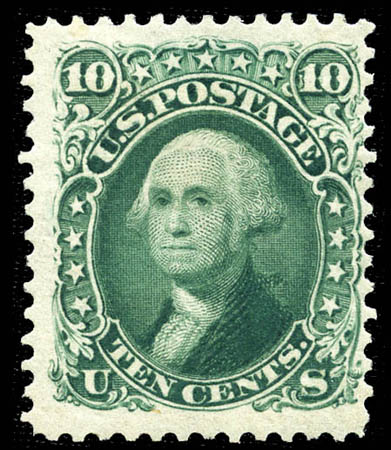( ) 1875 Re-issue of 1861-67 issue, 10¢ green (106), beautifully centered with wide margins and bright color and paper, unused without gum, fresh and Extremely Fine. Only 451 issued. Scott $1,650