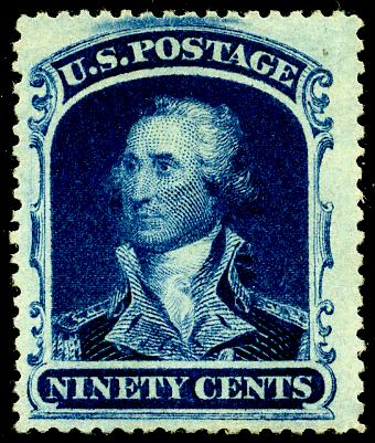 1860, 90¢ blue (39), beautifully centered within large margins, deep rich color on bright paper. Unused. Choice Very Fine.