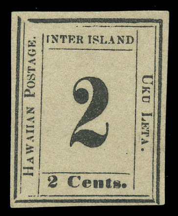 Hawaii, 1864, 2¢ black (20), plate 5C, Type VI, pos. 6; unused, ample to large margins, nearly Very Fine.