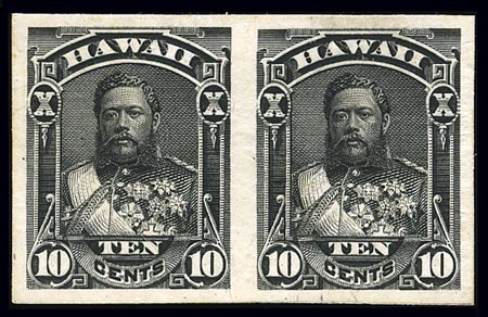 Hawaii, 1882, 10¢ black, plate proof on India (40P3), horizontal pair, still in backing card, large margins, fresh and Very Fine.