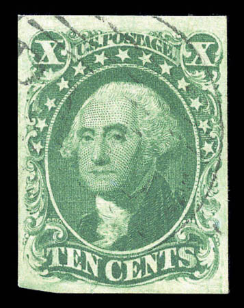 position 55L, recut at bottom, full to large margins with a light, face-free large Boston PAID grid cancel, fresh and Very Fine.