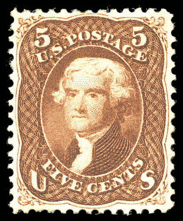 1862, 5¢ red brown (75), virtually perfectly centered with perforations clear of the design on all sides, rich, warm color and prooflike impression, disturbed original gum, exceptionally fresh and Extremely Fine. Scott $5,750