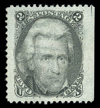 1867, 2¢ black, F. grill (93), huge, beautifully balanced margins including inter-pane margin from position 10L, light grid cancel, Extremely Fine and really quite stunning. Scott $60
