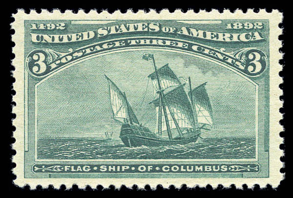 1893, 3¢ Columbian (232), nearly perfectly centered with wide margins, vibrant color and pristine, never hinged original gum, fresh and Extremely Fine. SMQ $195 for a normal 90. Scott $135