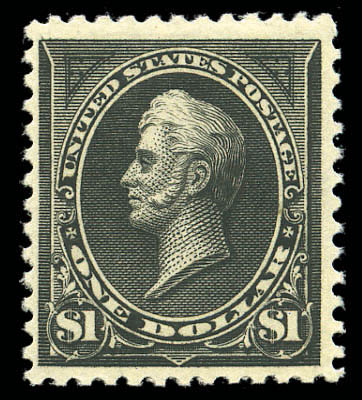 1894, $1 black, type II (261A), quite well centered with an intense, almost prooflike impression, bright paper and lightly hinged original gum, F.-V.F. and remarkably fresh.