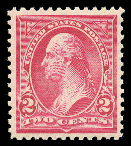 1898, 2¢ rose carmine, type IV (279Bc), nearly perfectly centered with exceptionally large margins, radiant color and never hinged original gum, Extremely Fine and choice. SMQ $2,400. Scott $850