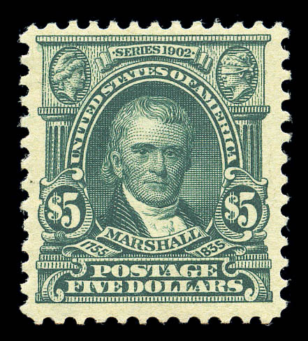 1903, $5 dark green (313), well centered and remarkably fresh with intense color and lightly hinged original gum, Very Fine and choice. Scott $2,500