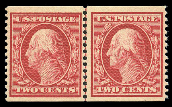 1909, 2¢ carmine coil (353),