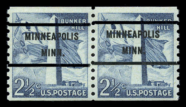 Bureau precanceled Minneapolis Minn., gap pair, original gum, never hinged, Very Fine.
