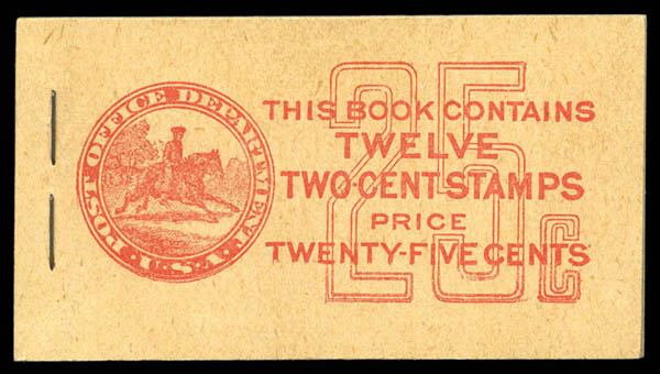 Booklet, 1917, 25¢, red on buff cover (BK58 var.), complete and unexploded, containing two panes of #499e, with the unique cover style, Furman type IIIb, post office fresh and Extremely Fine. Estimate $1,500 - 2,000