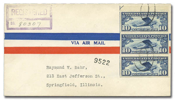 Airmail Booklet Pane, 1928, 10¢ Lindbergh (C10a),