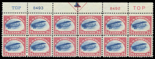 top margin imprint and plate no. block of 12 showing somewhat of a