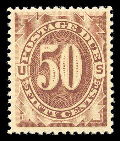 Postage Due, 1879, 50¢ brown (J7), beautifully centered with large balanced margins, rich color and immaculate, never hinged original gum, post office fresh and choice Very Fine.