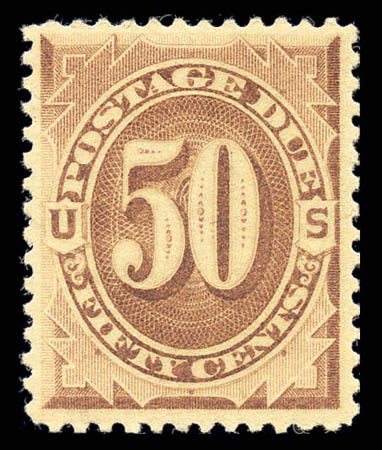Postage Due, 1879, 50¢ brown (J7), outstanding centering, bright fresh color, never hinged original gum, choice Very Fine. Scott $1,750