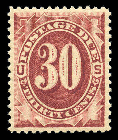 Postage Due, 1891, 30¢ bright claret (J27), beautifully centered, brilliant color, original gum that is technically never hinged, but has some small adherences, Extremely Fine, pretty. SMQ $880. Scott $650