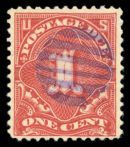 Postage Due, 1894, 1¢ vermilion (J29), well centered, lovely fresh color, neat small purple grid cancel, choice, Very Fine. Scott $725