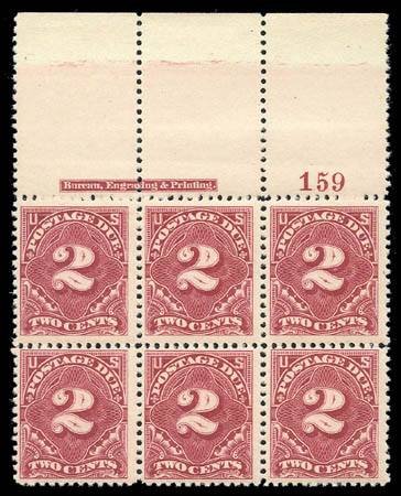 full top margin plate no. and imprint block of six, bright and fresh fresh with flawless, never hinged original gum; F.-V.F.