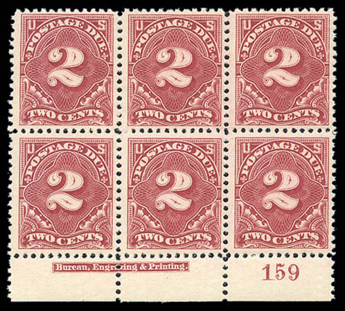 bottom margin plate no. and imprint block of six, nicely centered with vibrant color, never hinged original gum; wonderfully fresh and F.-V.F.