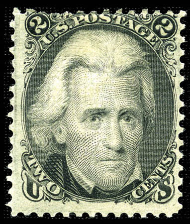 1867, 2¢ black, D. grill (84), strong grill, deep color with razor sharp impression, typical centering for this notoriously difficult issue, o.g., hinge remnant, Fine.