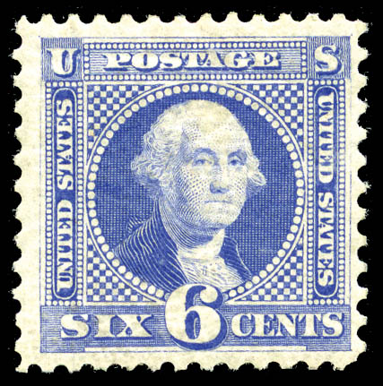 1869 (1875 Re-issue), 6¢ blue (126), wonderfully bright and fresh with luminous color and full, very lightly hinged original gum; original gum, very lightly hinged, F.-V.F. with great eye appeal. Only 2226 issued. Scott $1,650