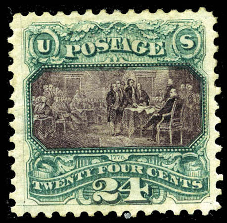 1869 (1875 Re-issue), 24¢ green & violet (130), exceptionally well centered with deep, dark color and full original gum, Very Fine to Extremely Fine. Only 2091 issued. SMQ $3,400. Scott $2,100