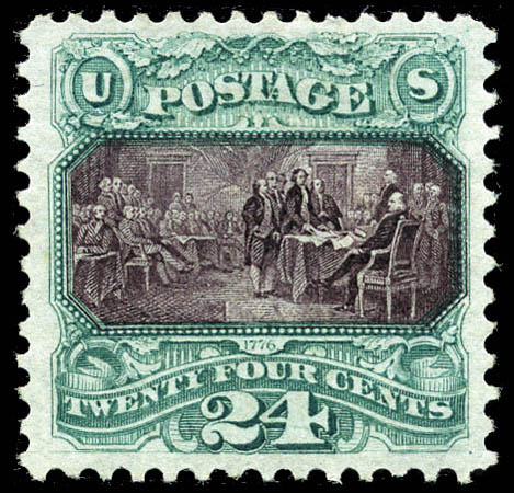1869 (1875 Re-issue), 24¢ green & violet (130), nearly perfectly centered and remarkably fresh with bright color and paper, unused without gum, Extremely Fine and choice; 2091 issued. Scott $900